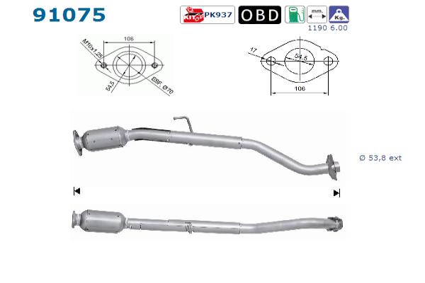 ab Bj. 200603, Einbauort hinten, Länge 1190 mm, Gewicht 6 kg, Benzin, EG - / ECE - gerecht , für Fahrzeuge mit OBD
