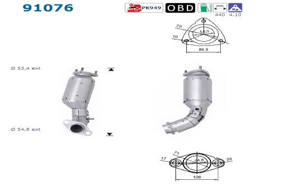 ab Bj. 199905, Einbauort vorne, Länge 440 mm, Gewicht 4, 1 kg, Benzin, EG - / ECE - gerecht , für Fahrzeuge mit OBD
