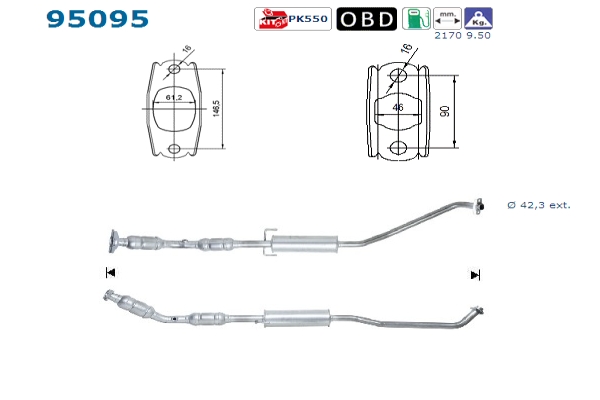 Länge 2170 mm, Gewicht 9, 5 kg, Benzin, EG - / ECE - gerecht , für Fahrzeuge mit OBD