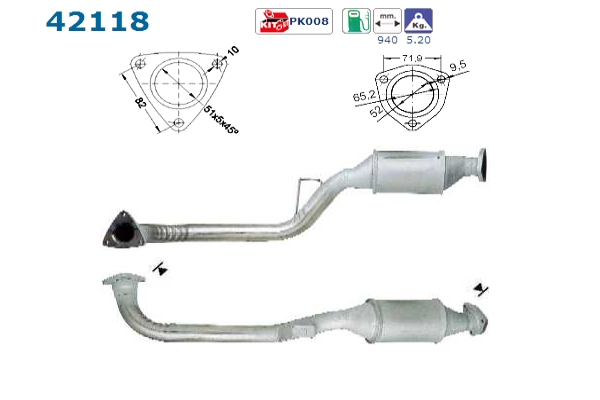 bis Bj. 05.94-, Einbauort links, Länge 940 mm, Gewicht 5, 2 kg, Benzin, EG - / ECE - gerecht