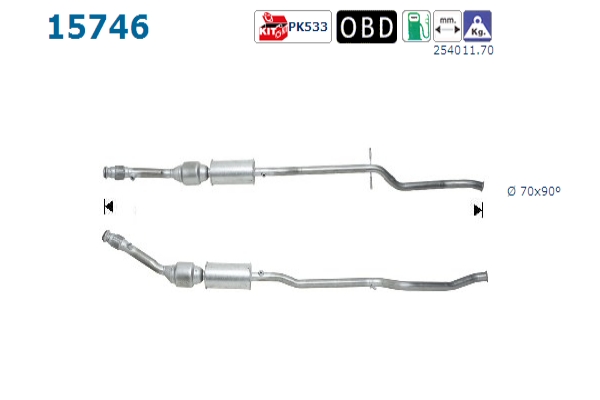 bis Bj. 08.02-, Länge 2540 mm, Gewicht 11, 7 kg, Benzin, EG - / ECE - gerecht , für Fahrzeuge mit OBD