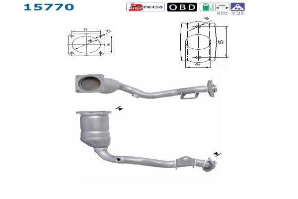 ab Bj. 200511, bis Bj. 10.09-, Länge 600 mm, Gewicht 3, 25 kg, Benzin, EG - / ECE - gerecht , für Fahrzeuge mit OBD