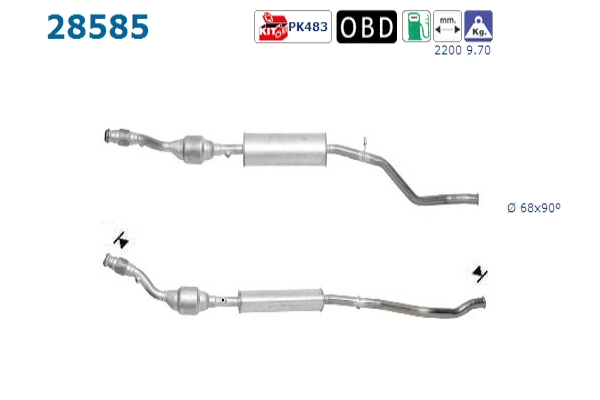 bis Bj. 04.03-, Länge 2200 mm, Gewicht 9, 7 kg, Benzin, EG - / ECE - gerecht , für Fahrzeuge mit OBD