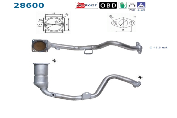 Länge 750 mm, Gewicht 4, 4 kg, Benzin, EG - / ECE - gerecht , für Fahrzeuge mit OBD