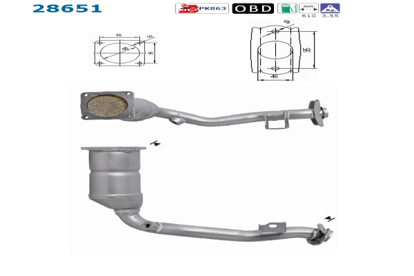 ab Bj. 200511, bis Bj. 10.09-, Länge 610 mm, Gewicht 3, 55 kg, Benzin, EG - / ECE - gerecht , für Fahrzeuge mit OBD
