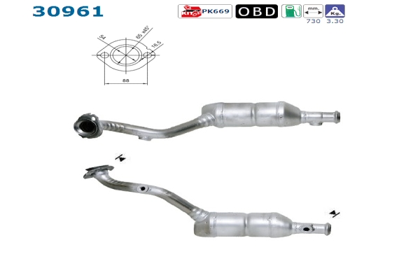 ab Bj. 200109, bis Bj. 05.03-, Länge 730 mm, Gewicht 3, 3 kg, Benzin, EG - / ECE - gerecht , für Fahrzeuge mit OBD