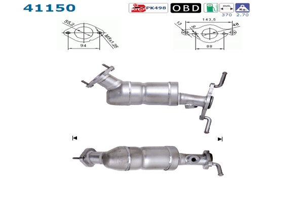 Einbauort hinten, Länge 370 mm, Gewicht 2, 7 kg, Benzin, EG - / ECE - gerecht , für Fahrzeuge mit OBD