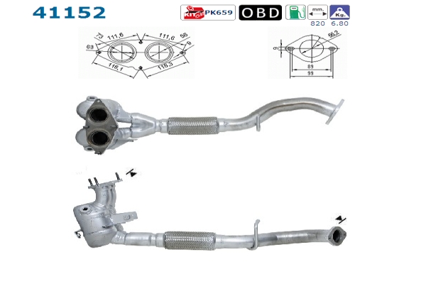 bis Bj. 01.02-, Einbauort vorne, Länge 820 mm, Gewicht 6, 8 kg, Benzin, EG - / ECE - gerecht , für Fahrzeuge mit OBD
