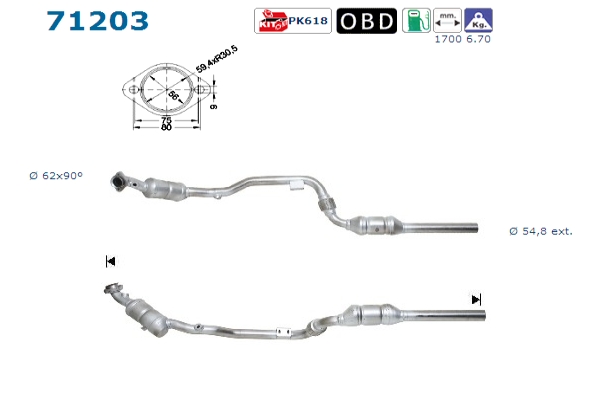 ab Bj. 199906, Einbauort rechts, Länge 1700 mm, Gewicht 6, 7 kg, Benzin, EG - / ECE - gerecht , für Fahrzeuge mit OBD