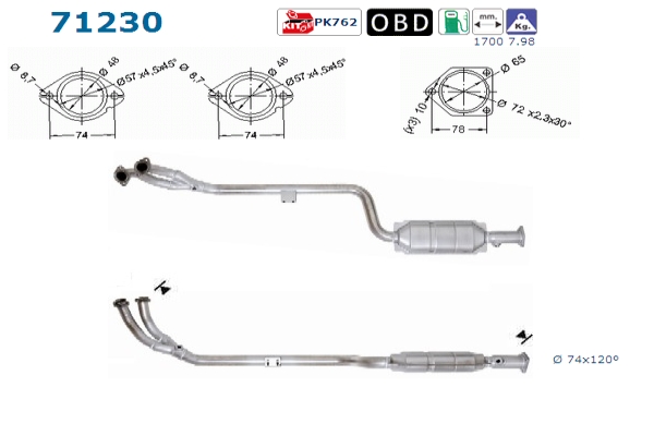 Länge 1700 mm, Gewicht 7, 98 kg, Benzin, EG - / ECE - gerecht , für Fahrzeuge mit OBD