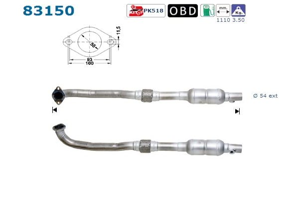 Einbauort hinten, Länge 1110 mm, Gewicht 3, 5 kg, Benzin, EG - / ECE - gerecht , für Fahrzeuge mit OBD