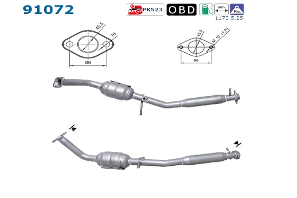 Einbauort hinten, Länge 1170 mm, Gewicht 5, 25 kg, Benzin, EG - / ECE - gerecht , für Fahrzeuge mit OBD