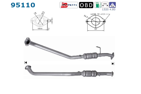 ab Bj. 200301, Einbauort hinten, Länge 1320 mm, Gewicht 4, 8 kg, Benzin, EG - / ECE - gerecht , für Fahrzeuge mit OBD