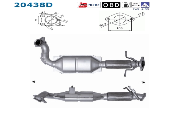 Länge 740 mm, Gewicht 4, 9 kg, Diesel, EG - / ECE - gerecht , für Fahrzeuge mit OBD