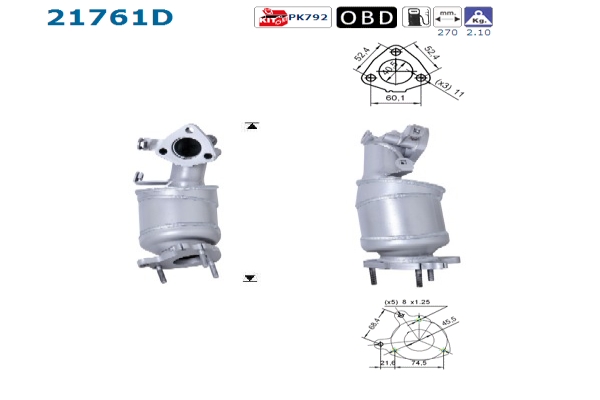 Einbauort vorne, Länge 270 mm, Gewicht 2, 1 kg, Diesel, EG - / ECE - gerecht , für Fahrzeuge mit OBD