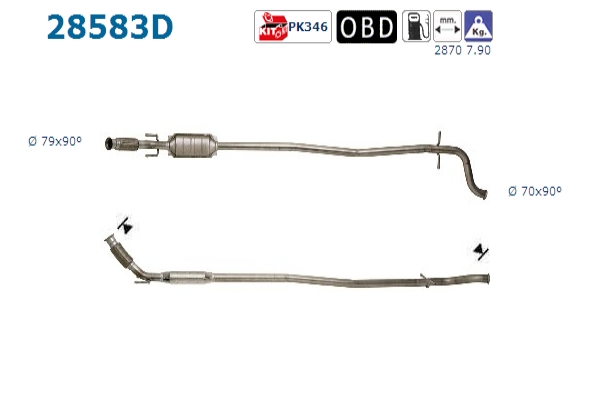ab Bj. 200003, Länge 2870 mm, Gewicht 7, 9 kg, Diesel, EG - / ECE - gerecht , für Fahrzeuge mit OBD