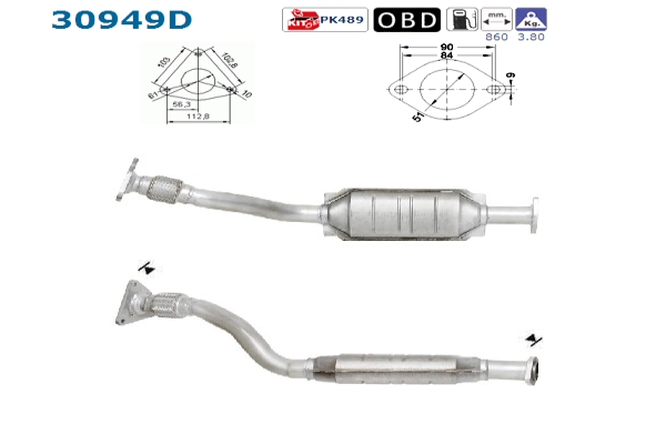 Einbauort hinten, Länge 860 mm, Gewicht 3, 8 kg, Diesel, EG - / ECE - gerecht , für Fahrzeuge mit OBD