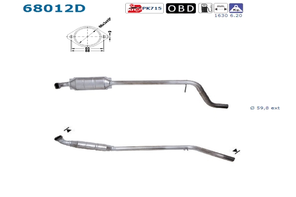 Länge 1630 mm, Gewicht 6, 2 kg, Diesel, EG - / ECE - gerecht , für Fahrzeuge mit OBD